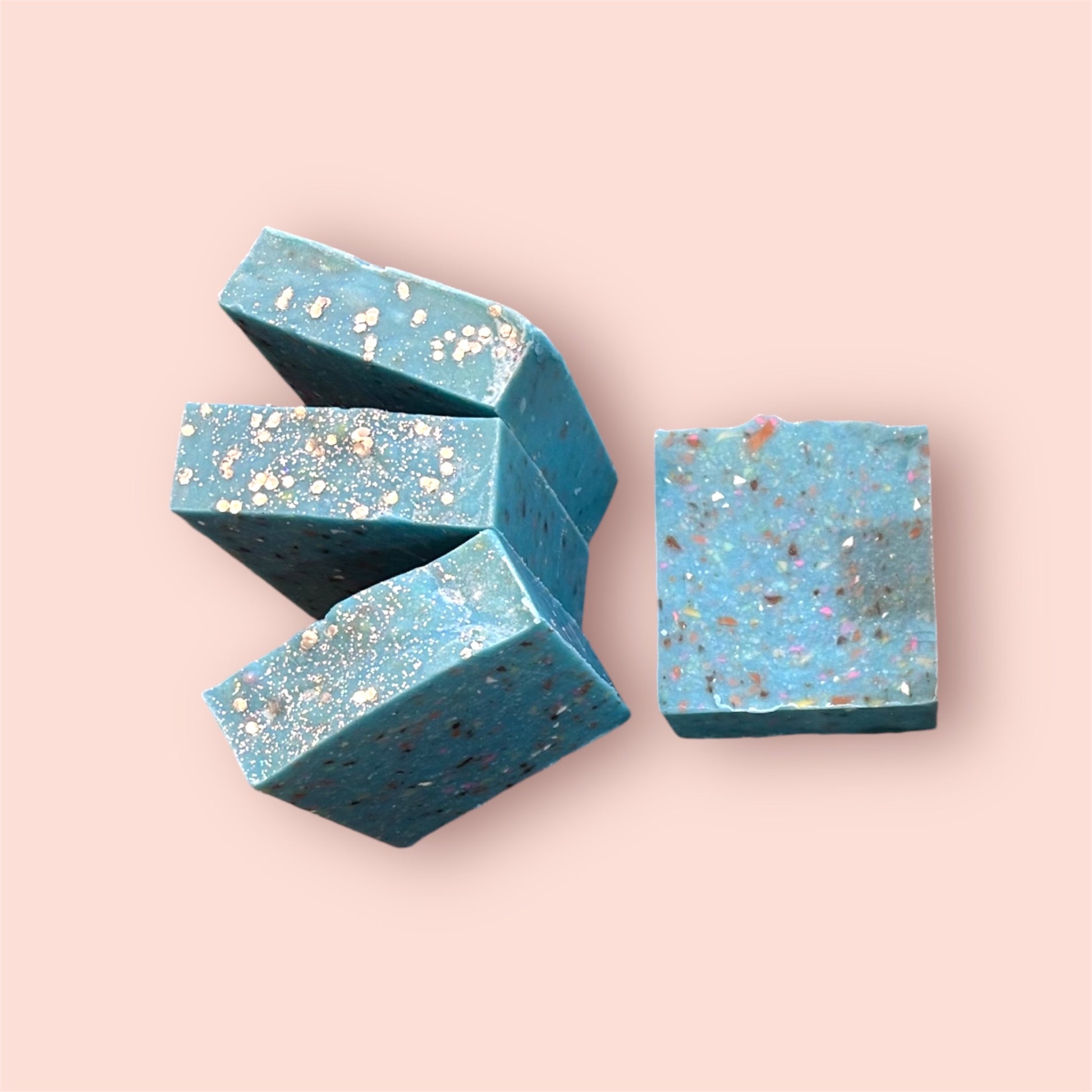 What The Soap: Jenns Party Soap is a confetti soap made with soap beveling from Jennifer @ JS Soaps and colored in an all over blue for Gina, one of our TikTok viewers!